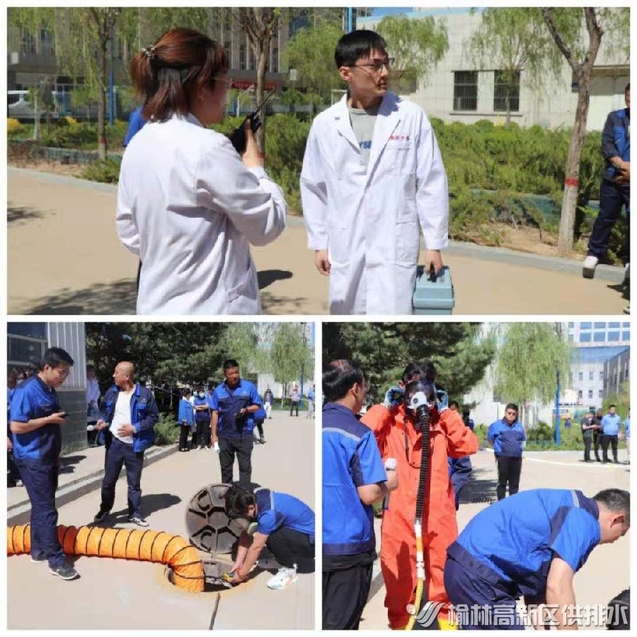 宣誓儀式結(jié)束后,組織開(kāi)展了有限空間應(yīng)急演練活動(dòng)。演練模擬凈水廠(chǎng)兩名值班人員,檢查次氯酸鈉投加管路被困檢修井。接到員工被困檢修井電話(huà)后,公司應(yīng)急領(lǐng)導(dǎo)小組立即啟動(dòng)《榆林高新區(qū)水務(wù)公司有限空間事故應(yīng)急預(yù)案》各救援組迅速抵達(dá)事故現(xiàn)場(chǎng),進(jìn)行現(xiàn)場(chǎng)警戒、人員救護(hù)送醫(yī)、設(shè)備搶修、水質(zhì)檢測(cè)以及事故后現(xiàn)場(chǎng)恢復(fù)等系列工作。